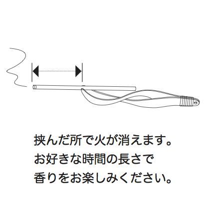 70mm以下の短くなったり折れたスティック型のお香も指が熱くなる事なく、火をつけて香りを楽しむことができます。挟んだ所で火が消えますので、たきたい時間を決めたり、お好きな長さで香りを楽しむことが出来ます。