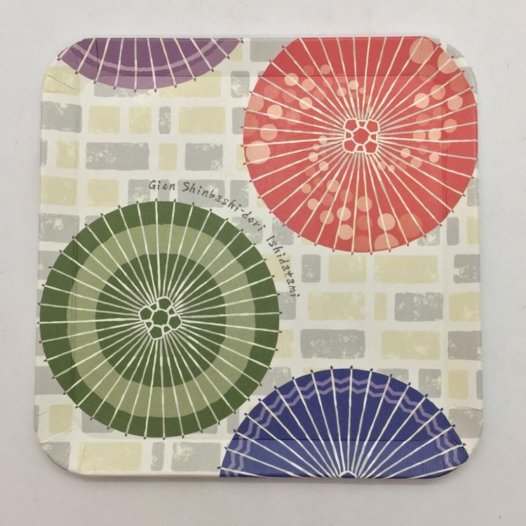 京都の風景をデザインした紙の皿。プレス成形をし、撥水加工をすることで、コースター、菓子皿、花瓶敷きや小物置きなど、様々な用途でお使いいただけます。お手入れの際には軽く湿らせた布巾などで軽くよごれを拭き取って下さい。