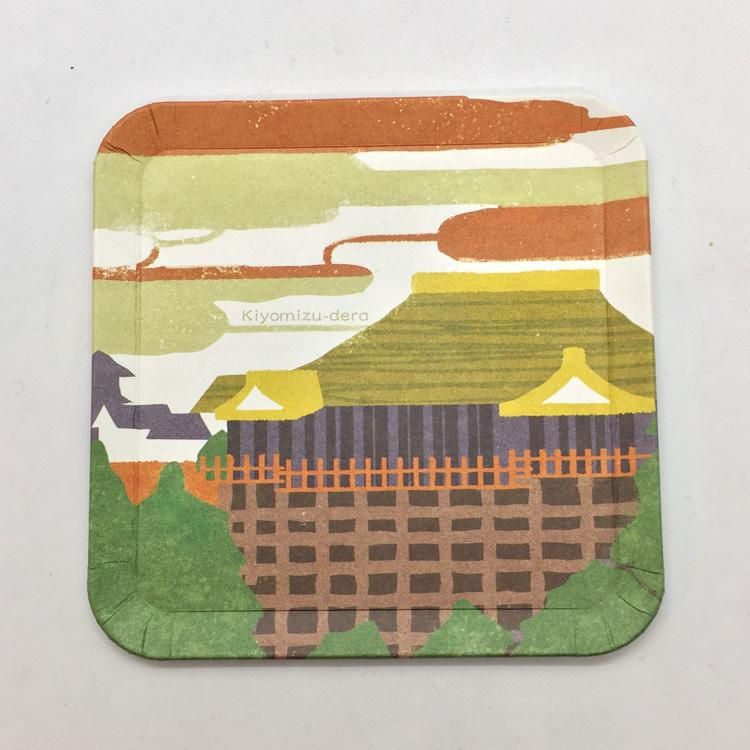 京都の風景をデザインした紙の皿。プレス成形をし、撥水加工をすることで、コースター、菓子皿、花瓶敷きや小物置きなど、様々な用途でお使いいただけます。お手入れの際には軽く湿らせた布巾などで軽くよごれを拭き取って下さい。