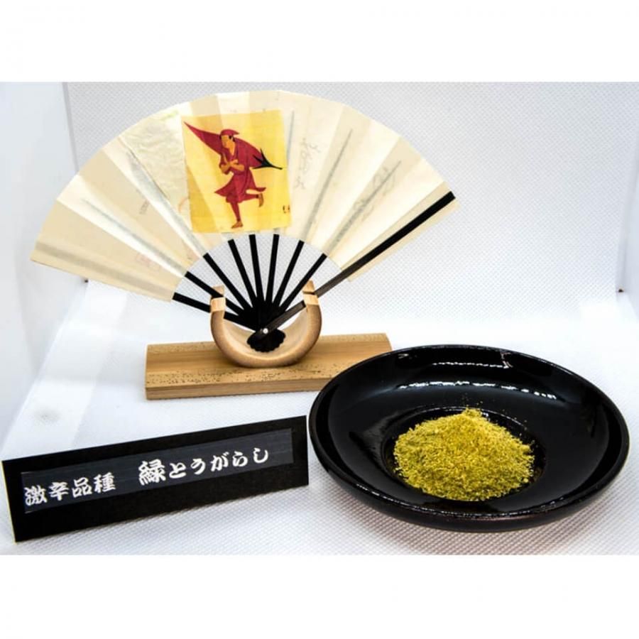 この品は、日本一辛い黄金唐辛子の黄金色に変わる寸前の唐辛子を一味として製造した独特の香りと辛さが楽しめる、唐辛子好きにとっては正に憧れ的存在の一品です。