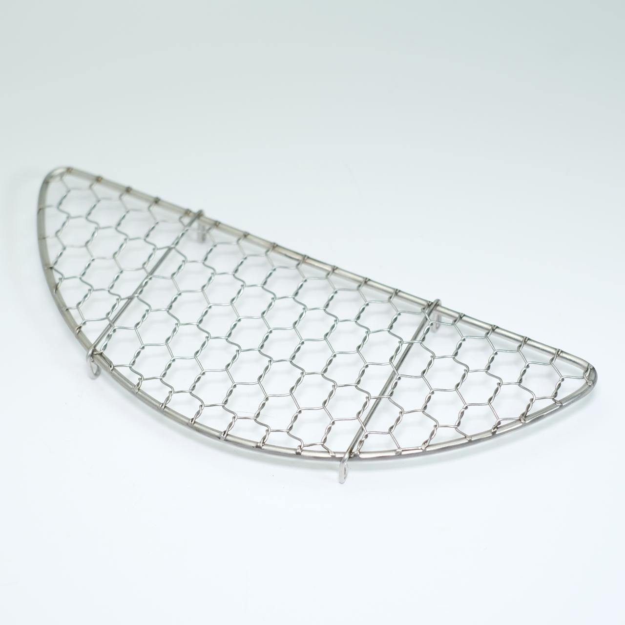 ステンレス製で亀甲目に編んだ網をひとつひとつ枠に溶接した手作りの商品です。
