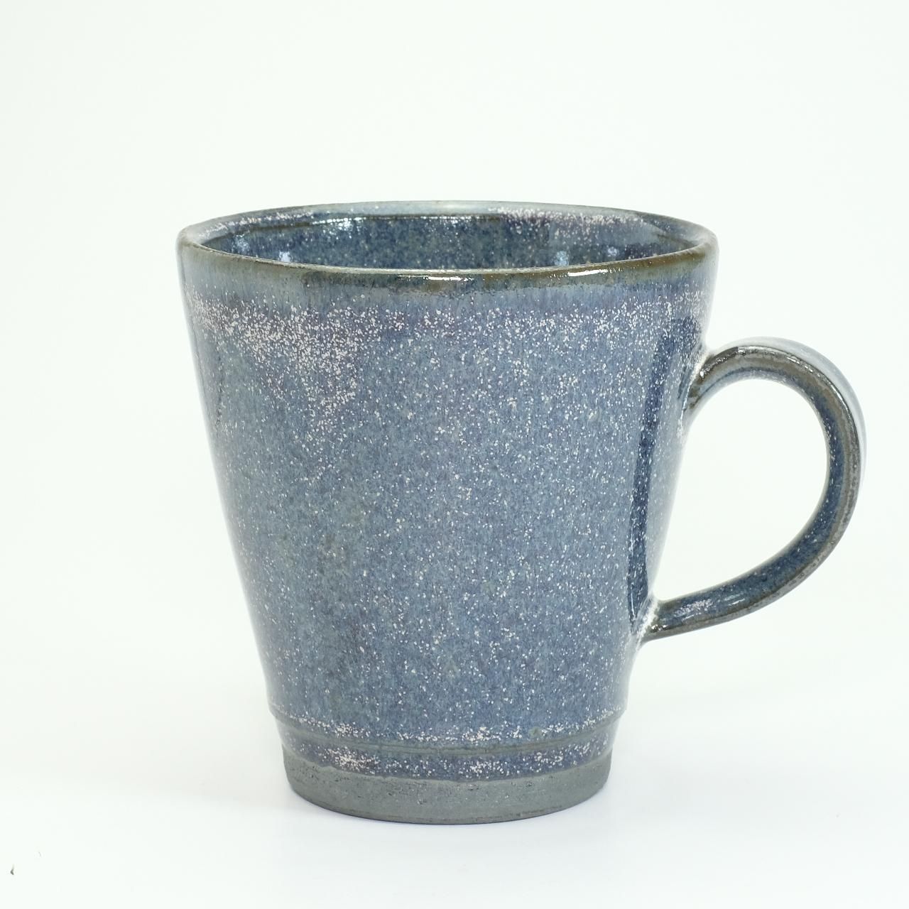 器にも同じシリーズを持つ紫白釉のマグカップ。器に比べて深い青紫の釉薬がメインに出ています。まるで印象派の絵画に似た深い夜空のような風景がカップに表現されています。