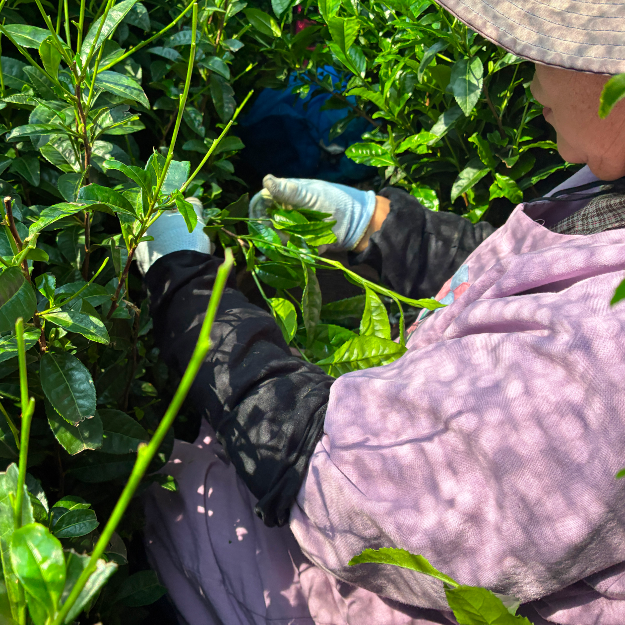 新茶の季節には地元の女性たちがお茶摘みさんとして柔らかい新芽だけを一枚一枚手摘みします。